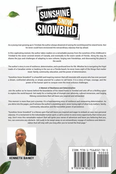 A Memoir of Resilience and Determination Join the author as he leaves behind the boundaries of his island home in Trinidad and sets off on a thrilling quest to explore the world beyond. Get ready for a riveting tale of triumph over adversity, cultural immersion, and forging lifelong connections that will leave you inspired and exhilarated. This memoir is more than just a journey. It's a heartwarming story of resilience and unwavering determination. As you delve into the pages, you'll witness the author's unyielding spirit, never losing sight of what truly matters: family, community, education, and the incredible power of persistence. "Sunshine Snow Snowbird" is a literary gem that will leave you inspired and eager to embark on your own personal odyssey. It's a testament to the indomitable human spirit, a call to action to seize every opportunity that comes your way. Don't miss this remarkable memoir that will ignite your sense of adventure and leave you believing that you, too, can overcome any obstacle. Get ready to be swept away on an extraordinary voyage of resilience and determination that will stay with you long after you've turned the final page."