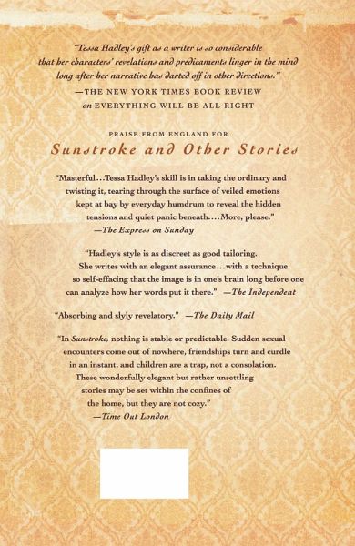 A Picador Paperback Original Tessa Hadley's stories trace the currents of desire, desperation, and mischief that that lie hidden inside domestic relationships. A mother hears her son's confession that he's cheating on his girlfriend; a student falls in love with a professor and initiates an affair with a man who looks just like him. A boy on a seaside vacation realizes that a grown-up woman is pressing dangerously close. In Tessa Hadley's Sunstroke and Other Stories, everyone conspires to hold the loving and stable surface of family life together, as old secrets and new appetites threaten to blow it apart.