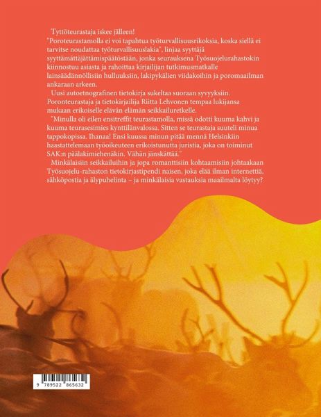 Tyttöteurastaja iskee jälleen! Porobaletti on jo taaksejäänyttä elämää ja uusi autoetnografinen tietokirja sukeltaa suoraan syvyyksiin. "Minulla oli eilen ensitreffit teurastamolla, missä odotti kuuma kahvi ja kuuma mies kynttilänvalossa. Sitten se teurastaja suuteli minua tappokopissa. Ihanaa! Ensi kuussa minun pitää mennä Helsinkiin haastattelemaan työoikeuteen erikoistunutta juristia, joka on toiminut SAK:n päälakimiehenäkin. Vähän jänskättää..." Minkälaisiin seikkailuihin ja jopa romanttisiin kohtaamisiin johtaakaan Työsuojelurahaston tietokirjastipendi naisen, joka elää ilman internettiä, sähköpostia ja älypuhelinta, kun kaikki vastaukset pitää etsiä maailmalta? Pooronteurastaja ja tietokirjailija Riitta Lehvonen tempaa lukijansa mukaan erikoiselle elävän elämän seikkailuretkelle Vaattunkikönkään vadelmapusikoitten yörastilta suunnistuskilpailujen kautta vasanmerkityksiin ja teurastamoseminaarista tanssipaikkojen pyörityksiin, mistä löytyy parkettien täydeltä tanssivia poliiseja, poromiehiä, rajavartijoita ja teurastajia vastaamaan kummallisiin kysymyksiin. "Poroteurastamolla ei voi tapahtua työturvallisuusrikoksia, koska siellä ei tarvitse noudattaa työturvallisuuslakia", linjaa syyttäjä syyttämättäjättämispäätöstään, jonka seurauksena Työsuojelurahastokin kiinnostuu asiasta ja rahoittaa kirjailijan tutkimusmatkalle lainsäädännöllisiin hulluuksiin, lakipykälien viidakoihin ja poromaailman ankaraan arkeen. Survival-retki vie etsijänsä eksyksiin monenlaisten karttojen ja mukavuusalueitten ulkopuolelle, mutta aina löytyy eläviä enkeleitä opastamaan takaisin maailmankartalle ja oikeitten vastausten äärelle kaikin tavoin onnelliseen loppuun. "Maailmassa pitää olla yhdet ainoat ihmisoikeudet, ja niiden täytyy olla täysin jakamattomat. Enää ei saa olla miesoikeudet ja naisvelvollisuudet", tähdentää Lehvonen.