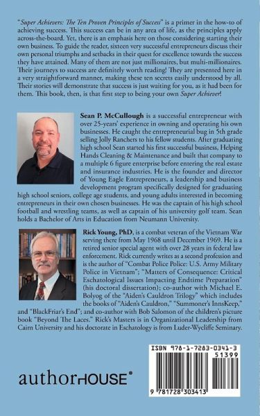 Sean P. McCullough is a successful entrepreneur with over 25-years' experience in owning and operating his own businesses. He caught the entrepreneurial bug in 5th grade selling Jolly Ranchers to his fellow students. After graduating high school Sean started his first successful business, Helping Hands Cleaning & Maintenance and built that company to a multiple 6 figure enterprise before entering the real estate and insurance industries. He is the founder and director of Young Eagle Entrepreneurs, a leadership and business development program specifically designed for graduating high school seniors, college age students, and young adults interested in becoming entrepreneurs in their own chosen businesses. He was the captain of his high school football and wrestling teams, as well as captain of his university golf team. Sean holds a Bachelor of Arts in Education from Neumann University. Rick Young, PhD, is a combat veteran of the Vietnam War serving there from May 1968 until December 1969. He is a retired senior special agent with over 28 years in federal law enforcement. Rick currently writes as a second profession and is the author of "Combat Police Police: U.S. Army Military Police in Vietnam"; "Matters of Consequence: Critical Eschatological Issues Impacting Endtime Preparation" (his doctoral dissertation); co-author with Michael E. Bolyog of the "Aiden's Cauldron Trilogy" which includes the books of "Aiden's Cauldron," "Summoner's InnsKeep," and "BlackFriar's End"; and co-author with Bob Salomon of the children's picture book "Beyond The Laces." Rick's Masters is in Organizational Leadership from Cairn University and his doctorate in Eschatology is from Luder-Wycliffe Seminary.