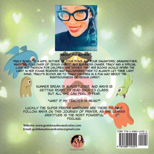 Super Prayer Warriors Summer break is almost over, and amiya is getting ready to head back to class. But all she can feel is FEAR. "What if my teacher is mean?" Luckily the Super Prayer Warriors are there to help. Follow amiya on this journey of prayer, as she learns gratitude is the most powerful feeling.