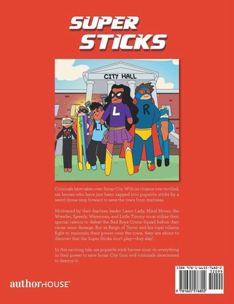 Criminals have taken over Sonar City. With its citizens now terrified, six heroes who have just been zapped into popsicle sticks by a weird drone step forward to save the town from madness. Motivated by their fearless leader Lasso Lady, Mind Mover, the Wrestler, Speedy, Waterman, and Little Timmy must utilize their special talents to defeat the Bad Boys Crime Squad before they cause more damage. But as Reign of Terror and his loyal villains fight to maintain their power over the town, they are about to discover that the Super Sticks don't play-they slay! In this exciting tale, six popsicle stick heroes must do everything in their power to save Sonar City from evil criminals determined to destroy it.