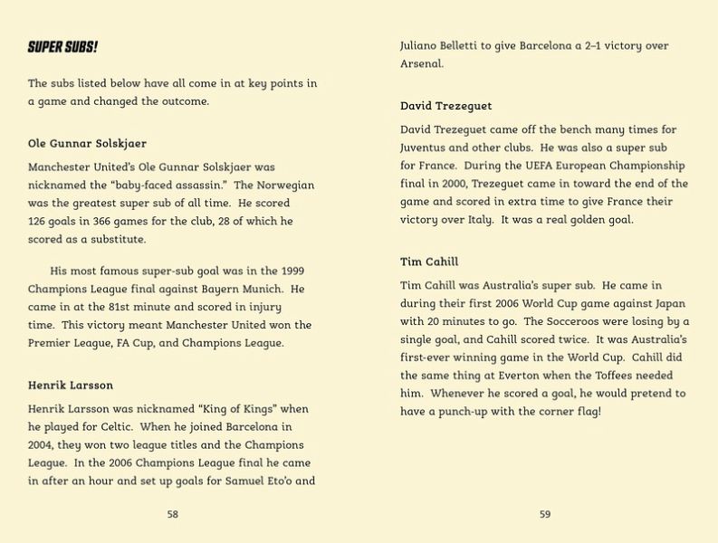 "Alan Gibbons returns with an action-packed football story accompanied by fascinating facts and historical detail about famous substitutes. New boy Smithy can't understand why everyone is so excited about a player on the football team called "Bengo." He's been absent for the first few games of the season and starts the next game on the bench, so surely he can't be that special? But when their coach pulls Smithy off and sends Bengo on in his place, Smithy gets a chance to see him in action. Bengo is easily the best player Smithy's ever seen, putting in perfect crosses and generally running the opposition ragged. So why is Bengo left on the bench so often, and why does he seem to bottle it when any strong tackles come his way? An engaging football story accompanied by fascinating facts about famous substitutes, from reluctant-reader favourite Alan Gibbons.--