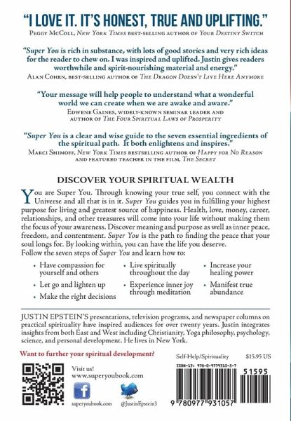 The greatest things that happen in your life are not consciously thought about or planned, like meeting a special someone, reading a life-changing book, or getting a great job. These coincidences have to do with Super You, even though you may not know it. Through knowing your deepest, Spiritual Self, you can attain what you need to be truly happy without making jobs, relationships, health, and things the primary focus of your life. What is Super You? What do we long for more than anything else? What will give us peace and happiness, and also whatever is necessary for our highest fulfillment? Super You is the Spiritual Self, the place within where God is expressed as you. Your Spiritual Self is an expression of God like a wave is an expression of the ocean. The wave contains the same components as the ocean and yet is a unique manifestation. Whatever you call the Universe-God, Spirit, Source, Jehovah, Father, Mother, Allah, Brahman, the Tao, or Great Spirit-this presence is everywhere and in everything, including you. You are Super You. Through knowing your true Self, you will discover your connection with the Universe and all that is in it. The Super You fulfills your highest purpose for living and is your greatest source of happiness.