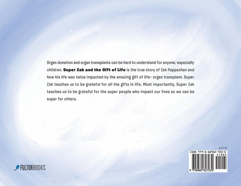 Organ donation and organ transplants can be hard to understand for anyone, especially children. Super Zak and the Gift of Life is the true story of Zak Pappachan and how his life was twice impacted by the amazing gift of life-- organ transplant. Super Zak teaches us to be grateful for all the gifts in life. Most importantly, Super Zak teaches us to be grateful for the super people who impact our lives so we can be super for others.