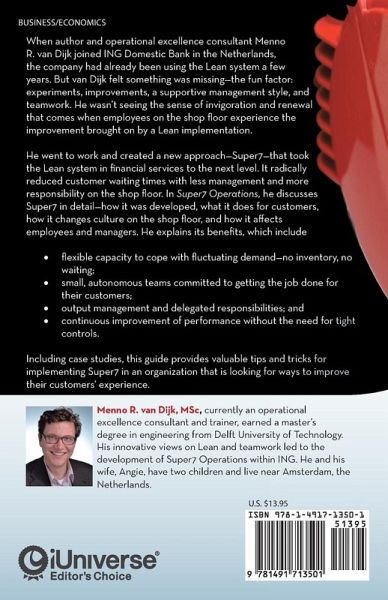 When author and operational excellence consultant Menno R. van Dijk joined ING Domestic Bank in the Netherlands, the company had already been using the Lean system a few years. But van Dijk felt something was missing-the fun factor: experiments, improvements, a supportive management style, and teamwork. He wasn't seeing the sense of invigoration and renewal that comes when employees on the shop floor experience the improvement brought on by a Lean implementation. He went to work and created a new approach-Super7-that took the Lean system in financial services to the next level. It radically reduced customer waiting times with less management and more responsibility on the shop floor. In Super7 Operations, he discusses Super7 in detail-how it was developed, what it does for customers, how it changes culture on the shop floor, and how it affects employees and managers. He explains its benefits, which include flexible capacity to cope with fluctuating demand-no inventory, no waiting; small, autonomous teams committed to getting the job done for their customers; output management and delegated responsibilities; and continuous improvement of performance without the need for tight controls. Including case studies, this guide provides valuable tips and tricks for implementing Super7 in an organization that is looking for ways to improve their customers' experience.