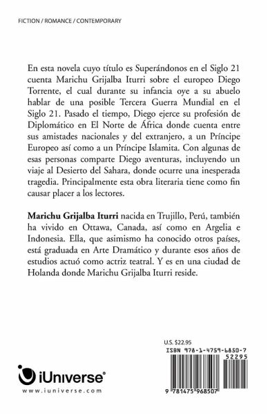 En esta novela cuyo título es Superándonos en el Siglo 21 cuenta Marichu Grijalba Iturri sobre el europeo Diego Torrente, el cual durante su infancia oye a su abuelo hablar de una posible Tercera Guerra Mundial en el Siglo 21. Pasado el tiempo, Diego ejerce su profesión de Diplomático en El Norte de África donde cuenta entre sus amistades nacionales y del extranjero, a un Príncipe Europeo así como a un Príncipe Islamita. Con algunas de esas personas comparte Diego aventuras, incluyendo un viaje al Desierto del Sahara, donde ocurre una inesperada tragedia. Principalmente esta obra literaria tiene como fin causar placer a los lectores.