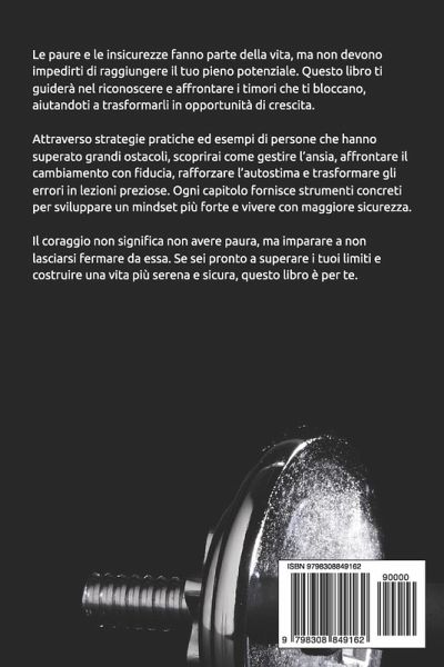 Quante volte hai sentito la paura bloccarti di fronte a un'opportunità? Quante volte le insicurezze ti hanno impedito di esprimere il tuo vero potenziale? Questo libro è un viaggio profondo e trasformativo che ti guiderà a riconoscere, affrontare e superare le tue paure, trasformandole in forza, motivazione e crescita personale. Attraverso strategie pratiche, esempi di persone famose che hanno vinto le proprie insicurezze, approfondimenti psicologici e citazioni ispiratrici, scoprirai come: * Comprendere l'origine delle paure e come affrontarle efficacemente * Trasformare i pensieri negativi in una mentalità vincente * Costruire fiducia in te stesso e vivere con coraggio * Usare lo sport e l'attività fisica come strumenti di crescita personale * Circondarti del giusto supporto sociale per rafforzare la tua sicurezza * Trasformare la paura in una spinta motivazionale per raggiungere i tuoi obiettivi Dalle tecniche di gestione dell'ansia alle storie di persone che hanno superato ostacoli incredibili, questo libro è una guida completa per aiutarti a costruire una vita oltre la paura e le insicurezze. Se sei pronto a smettere di farti limitare dai dubbi e iniziare a vivere con determinazione e fiducia, questo libro è per te. Il cambiamento inizia oggi!