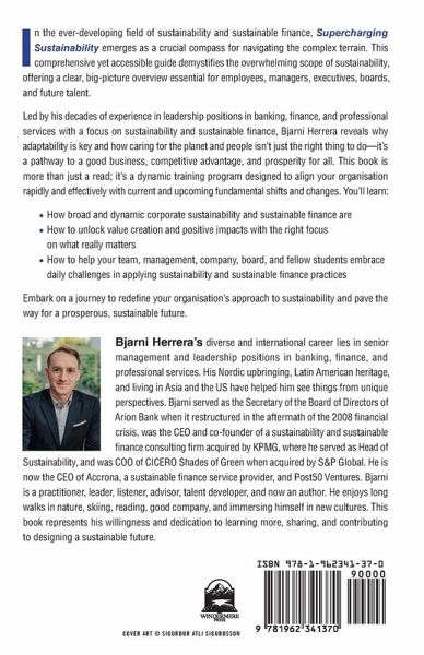 In the ever-developing field of sustainability and sustainable finance, Supercharging Sustainability emerges as a crucial compass for navigating the complex terrain. This comprehensive yet accessible guide demystifies the overwhelming scope of sustainability, offering a clear, big-picture overview essential for employees, managers, executives, boards, and future talent. Led by his decades of experience in leadership positions in banking, finance, and professional services with a focus on sustainability and sustainable finance, Bjarni Herrera reveals why adaptability is key and how caring for the planet and people isn't just the right thing to do-it's a pathway to a good business, competitive advantage, and prosperity for all. This book is more than just a read; it's a dynamic training program designed to align your organisation rapidly and effectively with current and upcoming fundamental shifts and changes. You'll learn:How broad and dynamic corporate sustainability and sustainable finance are How to unlock value creation and positive impacts with the right focus on what really matters How to help your team, management, company, board, and fellow students embrace daily challenges in applying sustainability and sustainable finance practices Embark on a journey to redefine your organisation's approach to sustainability and pave the way for a prosperous, sustainable future.