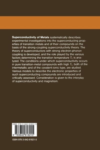 1. Introduction.- 1.1 The Distribution of Superconductors Among the Elements of the Periodic Table, Their Alloys and Compounds.- 1.2 Survey of Theoretical Concepts.- 2. The Theory of Strong Coupling Superconductors.- 2.1 Perturbation Theory for Green's Functions.- 2.2 Eliashberg Equations for the Electron Green's Function.- 2.3 The Superconducting Transition Temperature.- 2.4 Calculations of the Electron-Phonon Coupling Constant ?.- 3. Superconductivity and Magnetism.- 3.1 Conditions for the Occurrence of Superconductivity in a Ferromagnetic Metal.- 3.2 Superconductivity in Dilute Ferromagnetic Alloys.- 3.3 The Coexistence of Superconductivity and Helical Magnetic Ordering.- 3.4 Magnetic Ordering in Superconducting Rare-Earth Compounds.- 3.5 Magnetic Impurities in Superconductors.- 3.6 The Kondo Effect in Superconductors.- 3.7 Nonmagnetic Localized States in Superconducting Alloys.- 3.8 Localized Spin Fluctuations in Superconducting Alloys.- 3.9 Spin Fluctuations in Pure Transition Metals.- 4. Superconductivity in Transition Metals.- 4.1 The Principal Parameters of Superconducting Metals.- 4.2 The Electron Structure of Transition Metals.- 4.3 Lattice Dynamics of Transition Metals.- 4.4 The Electron-Phonon Interaction and Tc in Transition Metals.- 4.5 Calculating the Electron-Phonon Interaction Constant from First Principle.- 5. Superconductivity in Transition-Metal Alloys.- 5.1 Types of Solid Solutions and Conditions of Their Formation.- 5.2 The Superconducting Transition Temperature of Alloys.- 5.3 The Empirical Correlations Between Tc and the Electron and Lattice Properties of Solid Solutions.- 5.4 Miedema's Empirical Method of Describing Concentration Dependences of the Properties of Metals.- 5.5 Theoretical Analysis of the Concentration Dependence of Tc inAlloys.- 6. Compounds with A-15 Structure.- 6.1 Physical Properties.- 6.2 Band Structure.- 6.3 Investigation into Theoretical Models.- 6.4 Analysis of the Electron-Phonon Interaction and Tc.- 6.5 The Theory of Structural Transition in A-15 Compounds.- 7. Other Compounds Based on Transition Metals.- 7.1 Intermetallics.- 7.2 Compounds with NaCl Structure.- 7.3 Compounds of Palladium with Hydrogen and Deuterium.- 7.4 Sesquicarbides and Ternary Borides.- 7.5 Chalcogenides.- 8. High Temperature Superconductors and Lattice Instability of Compounds.- 8.1 Comparison of Superconductivity in Various Crystal Structures.- 8.2 Types of Lattice Instability.- 8.3 Phase Transition in 0n Structures from the Point of View of Symmetry Theory.- 8.4 Correlation Between High Tc and Lattice Instability.- 9. Radiation Effects on Superconductors.- 9.1 Radiation Resistance of Superconducting Materials.- 9.2 Structural Investigations of Radiation Defects.- 9.3 Physical Properties of Irradiated Superconducting Materials.- 9.4 Theoretical Models for the Degradation of Superconducti ng Properties.- References.