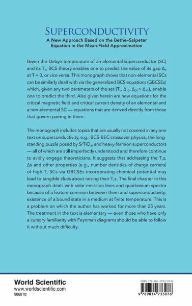 Given the Debye temperature of an elemental superconductor (SC) and its Tc, BCS theory enables one to predict the value of its gap Δ0 at T = 0, or vice versa. This monograph shows that non-elemental SCs can be similarly dealt with via the generalized BCS equations (GBCSEs) which, given any two parameters of the set {Tc, Δ10, Δ20 > Δ10}, enable one to predict the third. Also given herein are new equations for the critical magnetic field and critical current density of an elemental and a non-elemental SC — equations that are derived directly from those that govern pairing in them. The monograph includes topics that are usually not covered in any one text on superconductivity, e.g., BCS-BEC crossover physics, the long-standing puzzle posed by SrTiO3, and heavy-fermion superconductors — all of which are still imperfectly understood and therefore continue to avidly engage theoreticians. It suggests that addressing the Tcs, Δs and other properties (e.g., number densities of charge carriers) of high-Tc SCs via GBCSEs incorporating chemical potential may lead to tangible clues about raising their Tcs. The final chapter in this monograph deals with solar emission lines and quarkonium spectra because of a feature common between them and superconductivity: existence of a bound state in a medium at finite temperature. This is a problem on which the author has worked for more than 25 years. The treatment in the text is elementary — even those who have only a cursory familiarity with Feynman diagrams should be able to follow it without much difficulty.