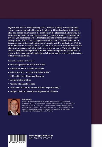 Supercritical Fluid Chromatography (SFC) provides a timely overview of SFC application areas which were unimaginable just a decade ago. This two-volume series opens with an overview of the history and expectant future of SFC and continues with recent applications in the pharmaceutical industry and other fascinating areas of science. SFC has found its place in the pharmaceutical industry with an increasing body of applications for chiral and achiral molecules in both the research and development phases of the drug discovery process. As illustrated in this two-volume series, the current interest in SFC extends well beyond the pharmaceutical industry. Chapters encompassing applications for polar and non-polar mixtures of importance are covering widely disparate areas in substance abuse, natural products including cannabinoids, bioactive lipids, flavor and fragrance. With its broad balance and coverage, this two-volume book constitutes a unique educational platform to students and scientists for many years to come. The major objective of this book editions is to inspire and stimulate readers to continue exploring the possibilities of exploiting supercritical fluids as a particular media for analysis, purifications and synthesis