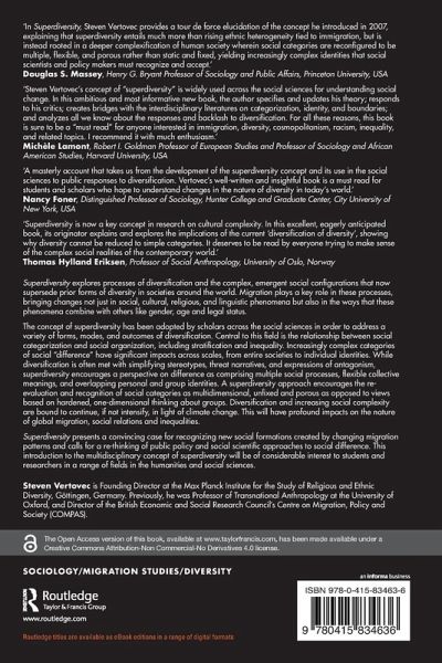 Superdiversity explores processes of diversification and the complex, emergent social configurations that now supersede prior forms of diversity in societies around the world.