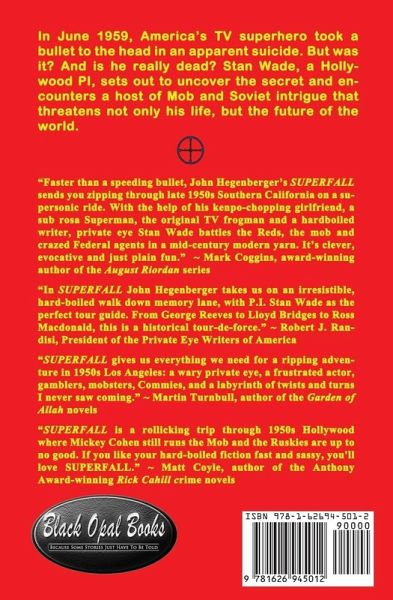 In June 1959, America's TV superhero took a bullet to the head in an apparent suicide. But was it? And is he really dead? Stan Wade, a Hollywood PI, sets out to uncover the secret and encounters a host of Mob and Soviet intrigue that threatens not only his life, but the future of the world.