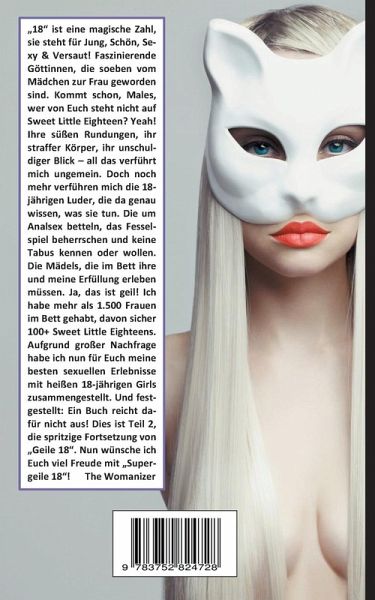 Die Zahl 18 ist eine magische, denn sie beschreibt genau die Eigenschaften, die mir an Frauen wichtig sind: So Jung, Schön, Sexy und Versaut! Die Rede ist von Göttinnen, die soeben die Grenze vom Mädchen zur Frau überschritten haben und sich in einem überaus reizvollen Alter befinden. Ihre süßen, noch mädchenhaften Rundungen, ihr straffer, faltenfreier Körper, ihr naiver, unschuldiger Blick, alles das verführt mich ungemein. Doch noch mehr verführen mich die 18-jährigen Luder, die im Bilde sind, was sie tun. Die es darauf anlegen. Die um Analsex betteln, die das Fesselspiel beherrschen, die Sperma genüsslich schlucken und genau wissen, wie sie den Mann genial befriedigen können. Die Mädels, die versaut sind und mit 18 bereits alle möglichen Tabus abgelegt haben, um im Bett ihre und meine Erfüllung zu erleben. Als Familienvater Ende 30, der ich nun bin, mit der tollen Andrea verheiratet und Vater zweier wundervoller Kinder, als renommierter TV-Produzent und Gutverdiener, ist es mir eine Ehre, auch heute noch mir das zu holen, was ich möchte. Sexuell. Das muss nicht immer 18 sein, aber hin und wieder sind sie noch dabei, die jungen Küken. In meinem Leben habe ich bereits über 1.500 Frauen im Bett gehabt, davon waren sicher 100 dabei, die Sweet Little Eighteen waren. Aufgrund großer Nachfrage habe ich meine besten sexuellen Erlebnisse mit 18-jährigen Girls zusammengestellt. Und festgestellt: Ein Buch reicht dafür nicht aus! Dies ist Teil 2, die Fortsetzung von "Geile 18"!