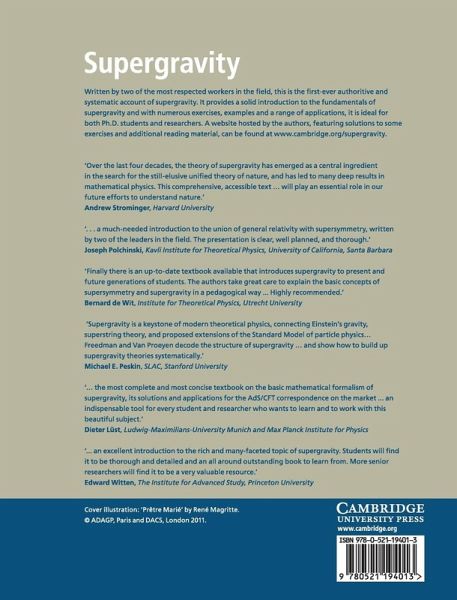 Written by two of the most respected workers in the field, this is the first-ever authoritative and systematic account of supergravity. It provides a thorough introduction to the fundamentals of supergravity and with numerous exercises, examples and its range of applications, it is ideal for both Ph.D. students and researchers.