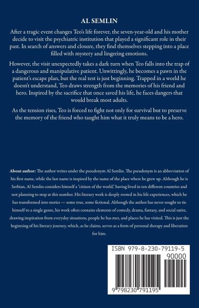 After a tragic event changes Teo's life forever, the seven-year-old and his mother decide to visit the psychiatric institution that played a significant role in their past. In search of answers and closure, they find themselves stepping into a place filled with mystery and lingering emotions. However, the visit unexpectedly takes a dark turn when Teo falls into the trap of a dangerous and manipulative patient. Unwittingly, he becomes a pawn in the patient's escape plan, but the real test is just beginning. Trapped in a world he doesn't understand, Teo draws strength from the memories of his friend and hero. Inspired by the sacrifice that once saved his life, he faces dangers that would break most adults. As the tension rises, Teo is forced to fight not only for survival but to preserve the memory of the friend who taught him what it truly means to be a hero.