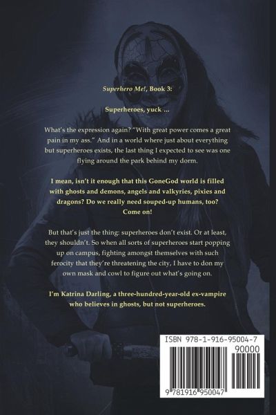 Superheroes, yuck ... What's the expression again? "With great power comes a great pain in my ass." And in a world where just about everything but superheroes exists, the last thing I expected to see was one flying around the park behind my dorm. I mean, isn't it enough that this GoneGod world is filled with ghosts and demons, angels and valkyries, pixies and dragons? Do we really need souped-up humans, too? Come on! But that's just the thing: superheroes don't exist. Or at least, they shouldn't. So when all sorts of superheroes start popping up on campus, fighting amongst themselves with such ferocity that they're threatening the city, I have to don my own mask and cowl to figure out what's going on.