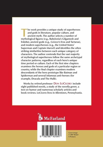 The work provides a unique study of superheroes and gods in literature, popular culture, and ancient myth. The author selects a number of mythological figures (e.g., Babylonia's Gilgamesh and Enkidu), ancient gods (e.g., Greece's Eros and Tartarus), and modern superheroes (e.g., the United States' Superman and Captain Marvel) and identifies the often striking similarities between each unique category of characters. The author contends that the vast majority of mythological superheroes follow the same archetypal character patterns, regardless of each hero's unique time period or culture. Each of the first nine chapters examines the heroes and gods of a particular region or country, while the final chapter examines modern descendants of the hero prototype like Batman and Spiderman and several infamous anti-heroes (for example, Dracula and The Hulk). Instructors considering this book for use in a course may request an examination copy here.