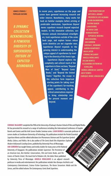 Contributions by Mitchell Adams, Frederick Luis Aldama, Jason Bainbridge, Djoymi Baker, Liam Burke, Octavia Cade, Hernan David Espinosa-Medina, Dan Golding, Ian Gordon, Sheena C. Howard, Aaron Humphrey, Naja Later, Cormac McGarry, Angela Ndalianis, Julian Novitz, Alexandra Ostrowski Schilling, Maria Lorena M. Santos, Jack Teiwes, and Enrique Uribe-Jongbloed In recent years, superheroes on the page and screen have garnered increasing research and wider interest. Nonetheless, many works fall back on familiar examples before arriving at predictable conclusions. Superheroes Beyond moves superhero research beyond expected examples. In this innovative collection, contributors unmask international crimefighters, track superheroes outside of the comic book page, and explore heroes whose secret identities are not cisgender men. Superheroes Beyond responds to the growing interest in understanding the unique appeal of superheroes by reveling in the diversity of this heroic type. Superheroes Beyond explores the complexity and cultural reach of the superhero in three sections. The first, "Beyond Men of Steel," examines how the archetype has moved beyond simply recapitulating the "man of steel" figure to include broader representations of race, gender, sexuality, and ableness. The second section, "Beyond Comic Books," discusses how the superhero has become a transmedia phenomenon, moving from comic books to toys to cinema screens and beyond. The final section, "Beyond the United States," highlights the vibrant but often overlooked history of global superhero figures. Together, the essays in this collection form important starting points for taking stock of the superhero's far-reaching appeal, contributing the critical conversations required to bring scholarship into the present moment and beyond.