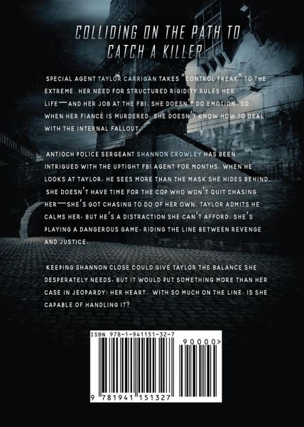 Colliding on the path to catch a killer… Special Agent Taylor Carrigan takes "control freak" to the extreme. Her need for structured rigidity rules her life-and her job at the FBI. She doesn't do emotion, so when her fiancé is murdered, she doesn't know how to deal with the internal fallout. Antioch Police Sergeant Shannon Crowley has been intrigued with the uptight FBI agent for months. When he looks at Taylor, he sees more than the mask she hides behind. She doesn't have time for the cop who won't quit chasing her-she's got chasing to do of her own. Taylor admits he calms her, but he's a distraction she can't afford. She's playing a dangerous game, riding the line between revenge and justice. Keeping Shannon close could give Taylor the balance she desperately needs, but it would put something more than her case in jeopardy: her heart. With so much on the line, is she capable of handling it?