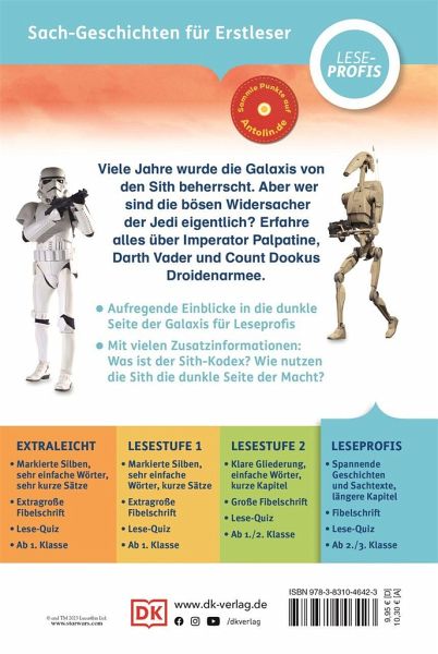 Auf ins Leseabenteuer auf der dunklen Seite des Star Wars(TM) Universums! Dieses SUPERLESER!-Erstlesebuch rückt die fiesen Widersacher der Jedi-Ritter ins Rampenlicht und erzählt die Geschichte der Star Wars(TM) Galaxis aus der Sicht der Sith. Wie wurde aus Anakin Skywalker der legendäre Darth Vader? Von der Entstehung des Sith Orden bis zu den mutigen Rebellen, die sich gegen die Sith-Schurken stellen: Ein besonderes Star Wars(TM) Buch mit viel Lesefutter und spannendem Sachwissen für fortgeschrittene Bücherwürmer.