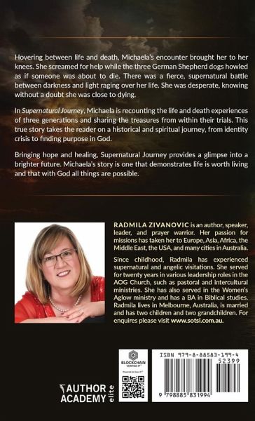 Radmila Zivanovic is an author, speaker, leader, and prayer warrior. Her passion for missions has taken her to Europe, Asia, Africa, the Middle East, the USA, and many cities in Australia. Since childhood, Radmila has experienced supernatural and angelic visitations. She served for twenty years in various leadership roles in the AOG Church, such as pastoral and intercultural ministries. She has also served in the Women's Aglow ministry and has a BA in Biblical studies. Radmila lives in Melbourne, Australia, is married and has two children and two grandchildren. For enquires please visit www.sotsi.com.au.