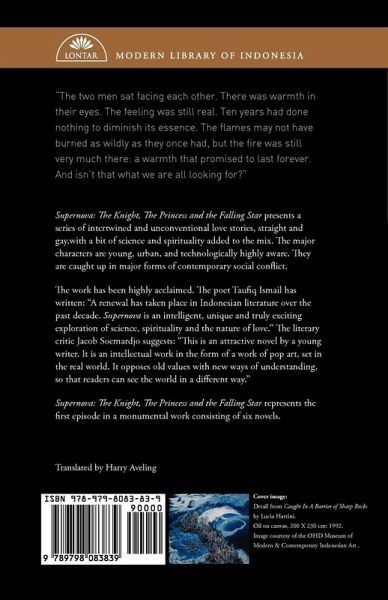 Supernova: The Knight, The Princess and the Falling Star presents a series of intertwined and unconventional love stories, straight and gay, with a bit of science and spirituality added to the mix. The major characters are young, urban, and technologically highly aware. They are caught up in major forms of contemporary social conflict. The work has been highly acclaimed. The poet Taufiq Ismail has written: "A renewal has taken place in Indonesian literature over the past decade. Supernova is an intelligent, unique and truly exciting exploration of science, spirituality and the nature of love." The literary critic Jacob Soemardjo suggests: "This is an attractive novel by a young writer. It is an intellectual work in the form of a work of pop art, set in the real world. It opposes old values with new ways of understanding, so that readers can see the world in a different way."