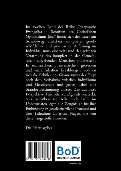 Diese Zusammenstellung thematisch verbundener belletristischer Beiträge der Schüler des Christlichen Gymnasiums Jena ist aus einer entsprechenden Arbeitsgemeinschaft "Junge Autoren" hervorgegangen und bietet einen Einblick in deren Schaffen. Sie bildet den zweiten Band der Reihe "Praeparatio Evangelica. Schriften des Christlichen Gymnasiums Jena".