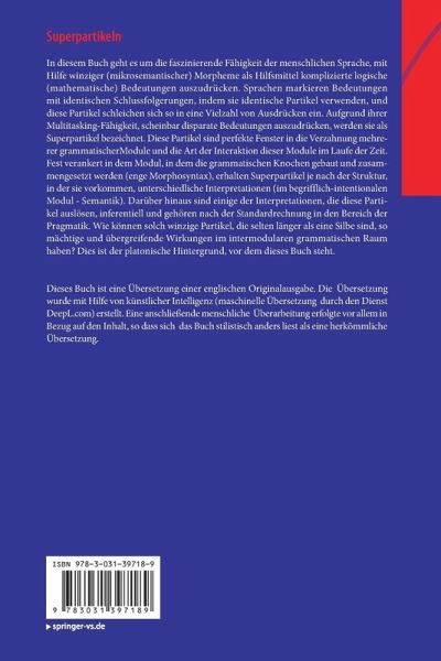 In diesem Buch geht es um die faszinierende Fähigkeit der menschlichen Sprache, mit Hilfe winziger (mikrosemantischer) Morpheme als Hilfsmittel komplizierte logische (mathematische) Bedeutungen auszudrücken. Sprachen markieren Bedeutungen mit identischen Schlussfolgerungen, indem sie identische Partikel verwenden, und diese Partikel schleichen sich so in eine Vielzahl von Ausdrücken ein. Aufgrund ihrer Multitasking-Fähigkeit, scheinbar disparate Bedeutungen auszudrücken, werden sie als Superpartikel bezeichnet. Diese Partikel sind perfekte Fenster in die Verzahnung mehrerer grammatischer Module und die Art der Interaktion dieser Module im Laufe der Zeit. Fest verankert in dem Modul, in dem die grammatischen Knochen gebaut und zusammengesetzt werden (enge Morphosyntax), erhalten Superpartikel je nach der Struktur, in der sie vorkommen, unterschiedliche Interpretationen (im begrifflich-intentionalen Modul - Semantik). Darüber hinaus sind einige der Interpretationen, die diese Partikelauslösen, inferentiell und gehören nach der Standardrechnung in den Bereich der Pragmatik. Wie können so winzige Partikel, die selten länger als eine Silbe sind, so mächtige und übergreifende Wirkungen im intermodularen grammatischen Raum haben? Dies ist der platonische Hintergrund, vor dem dieses Buch steht.