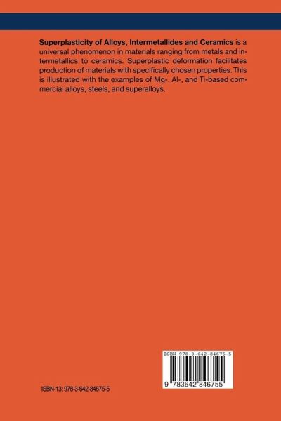 1. Structural Superplasticity.- 1.1 Phenomenology and Influence of the Initial Microstructure.- 1.2 Structure Evolution and Fracture Modes.- 2. The Nature of Superplastic Flow.- 2.1 Experimental Investigations of Superplastic Deformation.- 2.2 Micromechanisms and the Theory of Superplastic Deformation.- 3. Microcrystalline Materials and Microstructure Refining.- 3.1 Structure and Properties of Microcrystalline Materials.- 3.2 Metallurgical Methods of Refinement.- 3.3 Heat Treatment.- 4. Superplastic Deformation of Magnesium Alloys.- 4.1 Effect of Chemical Compositon, Structure, and Temperature-Rate Conditions of Deformation on Ductility.- 4.2 Refining of the Magnesium Alloy Structure.- 4.3 Effect of Superplastic Deformation on the Properties of the Alloys.- 5. Superplasticity of Commercial Aluminium Alloys.- 5.1 Effect of Structure, Conditions of Deformation, and Chemical Composition on the Superplasticity of Aluminium Alloys.- 5.2 Processing Methods for Obtaining Microcrystalline Structure in Commercial Aluminium Alloys.- 5.3 Effect of Superplastic Deformation on the Structure and Properties of Aluminium Alloys.- 5.4 Effect of Grain Size on the Structural Strength of Aluminium Alloys.- 6. Superplasticity of Titanium Alloys.- 6.1 Plasticity and Superplasticity of the Titanium Alloys in the Single-Phase Region.- 6.2 Superplasticity of Titanium Alloys in the Two-Phase Region.- 6.3 Methods of Obtaining Microcrystalline Structure in Titanium Alloys.- 6.4 The Effect of Superplastic Deformation on the Mechanical Properties of the Titanium Alloys.- 7. Structural Superplasticity of Steels.- 7.1 Superplasticity of Iron, Plain Carbon, and Alloyed Steels.- 7.2 Preparation of Fine-Grained Microstructure in Steels.- 7.3 Effect of Superplastic Deformation on Mechanical Properties.- 8. Superplasticity of Nickel-based Superalloys.- 8.1 Effect of Structure, Deformation Temperature and Strain Rate on the Ductility of Alloys.- 8.2 Methods for Converting Alloys into a Superplastic State.- 8.3 High-Temperature Properties of Alloys After Processing in the Superplastic Condition.- 9. Superplasticity of Intermetallic Compounds.- 9.1 Superplasticity of Alloys with Both Intermetallic and Metallic Phases.- 9.2 Superplasticity of Intermetallic Compounds.- 9.3 Refining of Microstructure in Intermetallics.- 9.4 Effect of Superplastic Treatment on the Physico-mechanical Properties of Intermetallics.- 10. Superplasticity of Ceramics.- 10.1 Influence of Structure and Strain Conditions on the Superplasticity of Ceramics.- 10.2 Mechanisms of Superplastic Deformation of Ceramics.- 10.3 Methods for Creating Microcrystalline Structures in Ceramics.- 10.4 Influence of Superplastic Deformation on the Properties of Ceramics.- References.- Author Index.