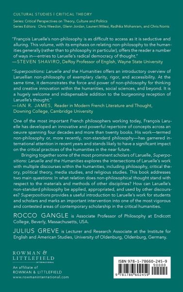 This book examines the relevance of Francois Laruelle's innovative notion of non-standard philosophy to critical and constructive discourses in the humanities, bringing together essays from prominent Anglophone scholars of Laruelle's work and includes a contribution from Laurelle himself.