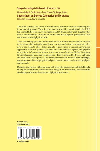 This book consists of a series of introductory lectures on mirror symmetry and its surrounding topics. These lectures were provided by participants in the PIMS Superschool for Derived Categories and D-branes in July 2016. Together, they form a comprehensive introduction to the field that integrates perspectives from mathematicians and physicists alike.