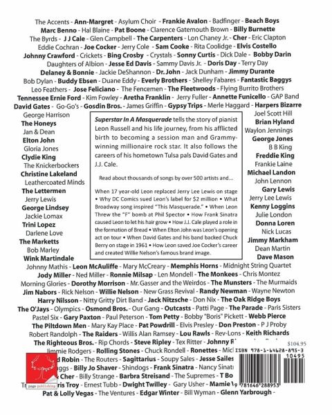 Superstar In A Masquerade tells the story of pianist Leon Russell and his life journey, from his afflicted birth to becoming a session man and Grammy-winning millionaire rock star. It also follows the careers of his hometown Tulsa pals David Gates and J.J. Cale. Read about thousands of songs by over 500 artists and... When 17 year-old Leon replaced Jerry Lee Lewis on stage Why DC Comics sued Leon's label for $2 million What Broadway song inspired "This Masquerade." When Leon Threw the "F" bomb at Phil Spector How Frank Sinatra caused Leon to let his hair grow How J.J. Cale played a role in the formation of Bread When Elton John was Leon's opening act on tour When David Gates and his band backed Chuck Berry on stage in 1961 How Leon saved Joe Cocker's career and created Willie Nelson's famous brand image.