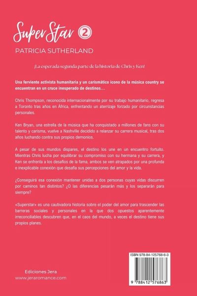 ¡La esperada segunda parte de la historia de Chris y Ken! Una ferviente activista humanitaria y un carismático ícono de la música country se encuentran en un cruce inesperado de destinos... Chris Thompson, reconocida internacionalmente por su trabajo humanitario, regresa a Toronto tras años en África, enfrentando un aterrizaje forzado por circunstancias personales. Ken Bryan, una estrella de la música que ha conquistado a millones de fans con su talento y carisma, vuelve a Nashville decidido a relanzar su carrera musical, tras dos años luchando contra sus propios demonios. A pesar de sus mundos dispares, el destino los une en un encuentro fortuito. Mientras Chris lucha por equilibrar su compromiso con su hermana y su carrera, y Ken se enfrenta a los desafíos de la fama, ambos se ven atrapados por una profunda e inexplicable conexión que desafía sus percepciones del amor y la vida. ¿Conseguirá esa conexión mantener unidas a dos personas cuyas vidas discurren por caminos tan distintos? ¿O las diferencias pesarán más y los separarán para siempre? Superstar es una cautivadora historia sobre el poder del amor para trascender las barreras sociales y personales en la que dos opuestos aparentemente irreconciliables descubren que, en el caos del mundo, a veces el destino tiene sus propios planes.