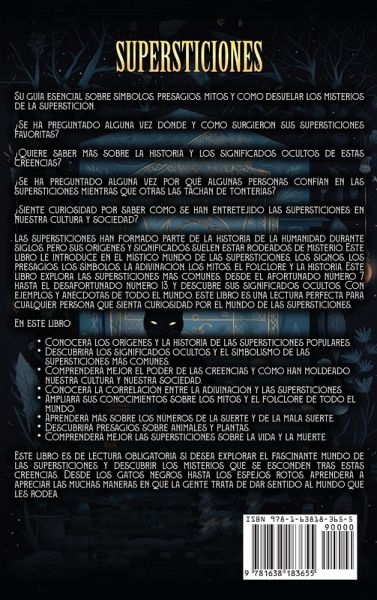 Su guía esencial sobre símbolos, presagios, mitos y cómo desvelar los misterios de la superstición. ¿Se ha preguntado alguna vez dónde y cómo surgieron sus supersticiones favoritas? ¿Quiere saber más sobre la historia y los significados ocultos de estas creencias? ¿Se ha preguntado alguna vez por qué algunas personas confían en las supersticiones mientras que otras las tachan de tonterías? ¿Siente curiosidad por saber cómo se han entretejido las supersticiones en nuestra cultura y sociedad? Las supersticiones han formado parte de la historia de la humanidad durante siglos, pero sus orígenes y significados suelen estar rodeados de misterio. Este libro le introduce en el místico mundo de las supersticiones, los signos, los presagios, los símbolos, la adivinación, los mitos, el folclore y la historia. Este libro explora las supersticiones más comunes, desde el afortunado número 7 hasta el desafortunado número 13, y descubre sus significados ocultos. Con ejemplos y anécdotas de todo el mundo, este libro es una lectura perfecta para cualquier persona que sienta curiosidad por el mundo de las supersticiones. En este libro:Conocerá los orígenes y la historia de las supersticiones populares. Descubrirá los significados ocultos y el simbolismo de las supersticiones más comunes. Comprenderá mejor el poder de las creencias y cómo han moldeado nuestra cultura y nuestra sociedad. Conocerá la correlación entre la adivinación y las supersticiones. Ampliará sus conocimientos sobre los mitos y el folclore de todo el mundo. Aprenderá más sobre los números de la suerte y de la mala suerte. Descubrirá presagios sobre animales y plantas. Comprenderá mejor las supersticiones sobre la vida y la muerte. Este libro es de lectura obligatoria si desea explorar el fascinante mundo de las supersticiones y descubrir los misterios que se esconden tras estas creencias. Desde los gatos negros hasta los espejos rotos, aprenderá a apreciar las muchas maneras en que la gente trata de dar sentido al mundo que les rodea.