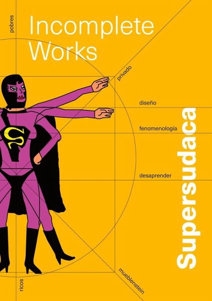 Contrapuesto a un libro de obras completas acumuladas a lo largo de toda una vida de experiencia sólida, Incomplete Works intenta exponer el proceso como marco. El libro muestra los contenidos de Supersudaca como etapas temporales. Al final, la publicación estará terminada cuando esté incompleta. Para Supersudaca el mundo entero es objeto de análisis e intervención, siempre y cuando a su práctica de la amistad se le permita activar ese escudo que los protege y empodera como a niños en casas en árboles a lo largo de todo el mundo. Al desarrollar esta práctica de la amistad, bien pueden haber creado una poderosa vacuna para nuestra pandemia de aislamiento por las redes sociales: una burbuja que les permite involucrarse con el resto del mundo, en su gloriosa contradicción. Tal es su superpoder.