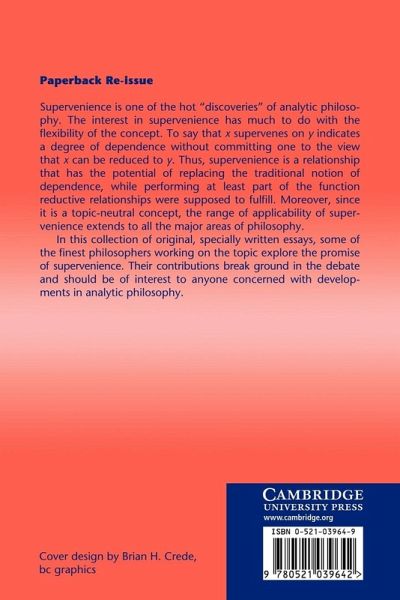 Supervenience is one of the 'hot discoveries' of recent analytic philosophy, and this collection of new essays on the topic represents a 'state of the art' examination of it and its application to major areas of philosophy. The interest in supervenience has much to do with the flexibility of the concept. To say that x supervenes on y indicates a degree of dependence without committing one to the view that x can be reduced to y. Thus supervenience is a relationship that has the potential of replacing the traditional notion of dependence, while performing at least part of the function reductive relationships were supposed to fulfil. Moreover, since it is a topic-neutral concept, supervenience has a wide range of applicability.