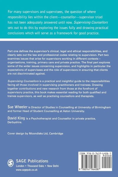 `I found this edition on supervising counsellors comprehensive and most accessible.... This book does not lay down the rules of supervision rather it illustrates problem areas and offers guidelines, thus supporting the supervisor, while ensuring that the supervisee gets the best supervision possible' - Eisteach