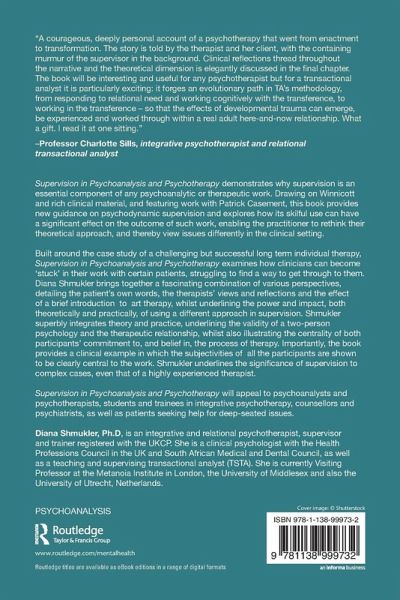 Supervision in Psychoanalysis and Psychotherapy demonstrates why supervision is an essential component of any psychoanalytic or therapeutic work. Drawing on Winnicott and rich clinical material, and featuring work with Patrick Casement, this book provides new guidance on psychodynamic supervision and explores how its skilful use can have a significant effect on the outcome of such work, enabling the practitioner to rethink their theoretical approach, and thereby view issues differently in the clinical setting. Built around the case study of a challenging but successful long term individual therapy, Supervision in Psychoanalysis and Psychotherapy examines how clinicians can become 'stuck' in their work with certain patients, struggling to find a way to get through to them. Diana Shmukler brings together a fascinating combination of various perspectives, detailing the patient's own words, the therapists' views and reflections and the effect of a brief introduction to Art Therapy, whilst underlining the power and impact, both theoretically and practically, of using a different approach in supervision. Shmukler superbly integrates theory and practice, underlining the validity of a two-person psychology and the therapeutic relationship, whilst also illustrating the centrality of both participant's commitment to, and belief in, the process of therapy. Importantly, the book provides a clinical example in which the subjectivities of all the participants are shown to be clearly central to the work. Shmukler underlines the significance of supervision to complex cases, even that of a highly experienced therapist. Supervision in Psychoanalysis and Psychotherapy will appeal to psychoanalysts and psychotherapists, students and trainees in integrative psychotherapy, counsellors and psychiatrists, as well as patients seeking help for deep seated issues.