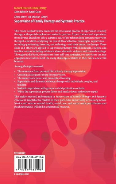 The highly practical information in Supervision of Family Therapy and Systemic Practice is adaptable by readers to their particular supervisory or training needs. Novice and veteran mental health, social care, and social work practitioners and psychotherapists, will find it a substantial resource.