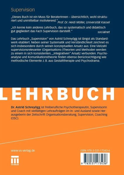 Das Lehrbuch "Supervision" von Astrid Schreyögg ist längst als Standardwerk etabliert. Neben seiner Systematik und Verständlichkeit zeichnet es sich insbesondere durch seinen konzeptuellen Ansatz aus: Eine Vielzahl supervisionsrelevanter (Organisations-)Theorien und Methoden werden zu einem in sich konsistenten, "integrativen" Ansatz verbunden. Psychoanalyse und Komunikationstheorie finden ebenso Berücksichtigung wie methodische Elemente z.B. aus Gestalttherapie und Psychodrama.