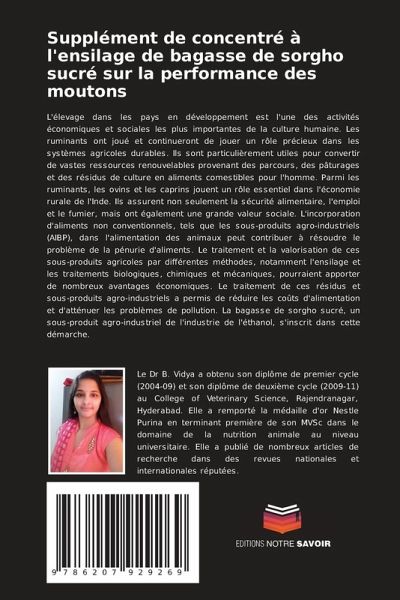 L'élevage dans les pays en développement est l'une des activités économiques et sociales les plus importantes de la culture humaine. Les ruminants ont joué et continueront de jouer un rôle précieux dans les systèmes agricoles durables. Ils sont particulièrement utiles pour convertir de vastes ressources renouvelables provenant des parcours, des pâturages et des résidus de culture en aliments comestibles pour l'homme. Parmi les ruminants, les ovins et les caprins jouent un rôle essentiel dans l'économie rurale de l'Inde. Ils assurent non seulement la sécurité alimentaire, l'emploi et le fumier, mais ont également une grande valeur sociale. L'incorporation d'aliments non conventionnels, tels que les sous-produits agro-industriels (AIBP), dans l'alimentation des animaux peut contribuer à résoudre le problème de la pénurie d'aliments. Le traitement et la valorisation de ces sous-produits agricoles par différentes méthodes, notamment l'ensilage et les traitements biologiques, chimiques et mécaniques, pourraient apporter de nombreux avantages économiques. Le traitement de ces résidus et sous-produits agro-industriels a permis de réduire les coûts d'alimentation et d'atténuer les problèmes de pollution. La bagasse de sorgho sucré, un sous-produit agro-industriel de l'industrie de l'éthanol, s'inscrit dans cette démarche.