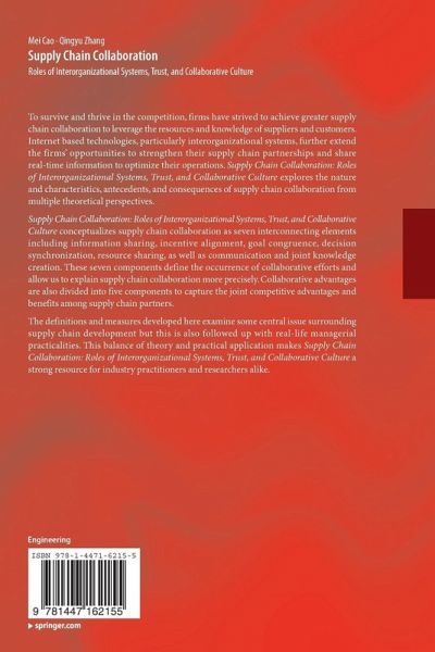 To survive and thrive in the competition, firms have strived to achieve greater supply chain collaboration to leverage the resources and knowledge of suppliers and customers. Internet based technologies, particularly interorganizational systems, further extend the firms' opportunities to strengthen their supply chain partnerships and share real-time information to optimize their operations. Supply Chain Collaboration: Roles of Interorganizational Systems, Trust, and Collaborative Culture explores the nature and characteristics, antecedents, and consequences of supply chain collaboration from multiple theoretical perspectives.