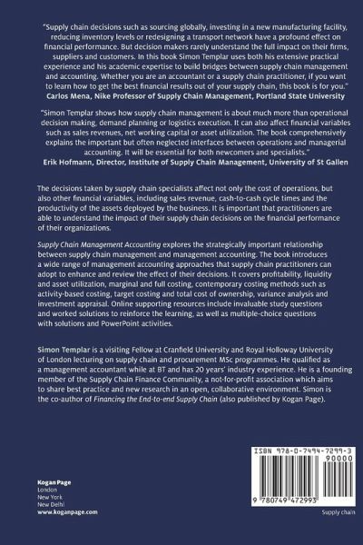 "Supply chain decisions, such as sourcing globally, investing in a new manufacturing facility, reducing inventory levels, or redesigning a transport network, have a profound impact on financial performance. However, decision makers rarely understand the full impact of these decision on their own firms, their supplier, and their customers. In this book, Dr. Simon Templar relies on his extensive practical experience and his academic expertise to build bridges between supply chain management and accounting. Whether you are an accountant or a supply chain practitioner, if you want to learn how to get the best financial results out of your supply chain, this book is for you." Carlos Mena, Nike Professor of Supply Chain Management, Portland State University, USA