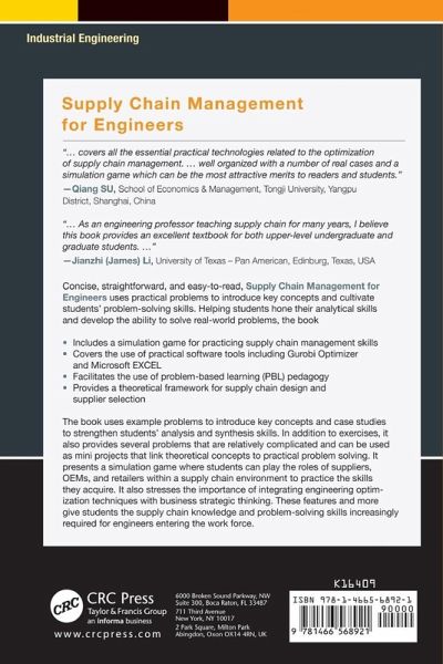 The book focuses on helping students develop strong analytical skills and the ability to solve real-world problems through analysis and synthesis. It also stresses the importance of integrating engineering optimization techniques with business strategic thinking. It starts with the description of different types of supply chains and the strategy for designing an appropriate supply chain based on product life cycle analysis. It then focuses on quantitative analysis techniques including demand forecasting, aggregate planning, inventory management, and distribution network design. It also covers supplier selection. The book is comprehensive yet concise, and includes many practical examples that are designed to help students acquire deep subject matter knowledge.