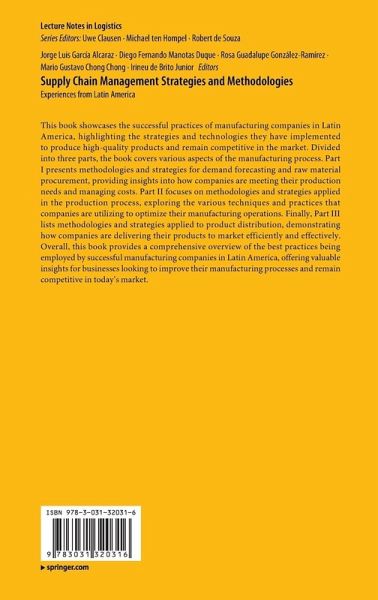 This book showcases the successful practices of manufacturing companies in Latin America, highlighting the strategies and technologies they have implemented to produce high-quality products and remain competitive in the market. Divided into three parts, the book covers various aspects of the manufacturing process. Part I presents methodologies and strategies for demand forecasting and raw material procurement, providing insights into how companies are meeting their production needs and managing costs. Part II focuses on methodologies and strategies applied in the production process, exploring the various techniques and practices that companies are utilizing to optimize their manufacturing operations. Finally, Part III lists methodologies and strategies applied to product distribution, demonstrating how companies are delivering their products to market efficiently and effectively. Overall, this book provides a comprehensive overview of the best practicesbeing employed by successful manufacturing companies in Latin America, offering valuable insights for businesses looking to improve their manufacturing processes and remain competitive in today's market.