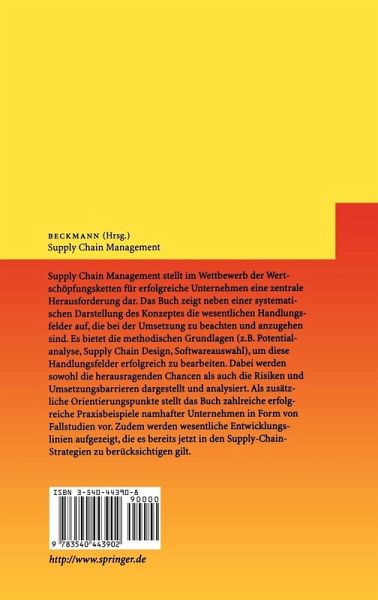 Supply Chain Management stellt im Wettbewerb der Wertschöpfungsketten für erfolgreiche Unternehmen eine zentrale Herausforderung dar. Das Buch zeigt neben einer systematischen Darstellung des Konzeptes die wesentlichen Handlungsfelder auf, die bei der Umsetzung zu beachten und anzugehen sind. Es bietet die methodischen Grundlagen (z.B. Potentialanalyse, Supply Chain Design, Softwareauswahl), um diese Handlungsfelder erfolgreich zu bearbeiten. Dabei werden sowohl die herausragenden Chancen als auch die Risiken und Umsetzungsbarrieren dargestellt und analysiert. Als zusätzliche Orientierungspunkte stellt das Buch zahlreiche erfolgreiche Praxisbeispiele namhafter Unternehmen in Form von Fallstudien vor. Zudem werden wesentliche Entwicklungslinien aufgezeigt, die es bereits jetzt in den Supply-Chain-Strategien zu berücksichtigen gilt.