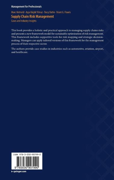 This book provides a holistic and practical approach to managing supply chains risks and presents a new framework model for sustainable optimization of risk management. This framework includes supportive tools for risk mapping and strategic decision-making. Managers can apply tailored versions of this framework for the management process of their respective sector. The authors provide case studies in industries such as automotive, aviation, airport, and healthcare.