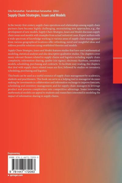 Supply Chain Strategies, Issues and Models features studies that have used mathematical modeling, statistical analyses and also descriptive qualitative studies. The chapters cover many relevant themes related to supply chains and logistics including supply chain complexity, information sharing, quality (six sigma), electronic Kanbans, inventory models, scheduling, purchasing and contracts. To facilitate easy reading, the chapters that deal with supply chain related issues are first, followed by studies on inventory, scheduling, purchasing and logistics.